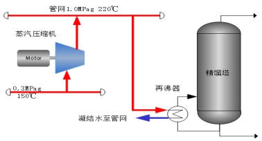 蒸汽能量回收机组组合了蒸汽多级闪蒸技术和抗相变蒸汽能量回收技术。是一种集成余热回收、升级和利用三种功能为一身的蒸汽余热回收装置。可以深度回收凝结余热和回收工业乏汽,将其升级为高品质的蒸汽,然后输送到需要蒸汽的用户。采用SER机组,将余热进行升级利用,从源头上减少余热的产生,具有操作简单,能量利用效率高的特点。 SER蒸汽能量回收机组是凝结水回收设备的升级换代产品,将低品位能量转化为高品质的蒸汽,在不改变蒸汽用户设备的前提下使余热得到充分利用。